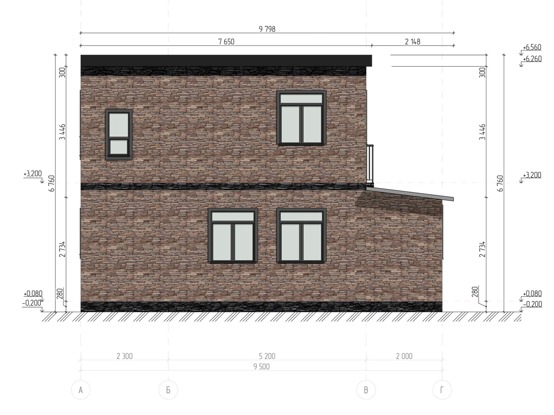 По проекту дома 2,3 — 2,5 м.