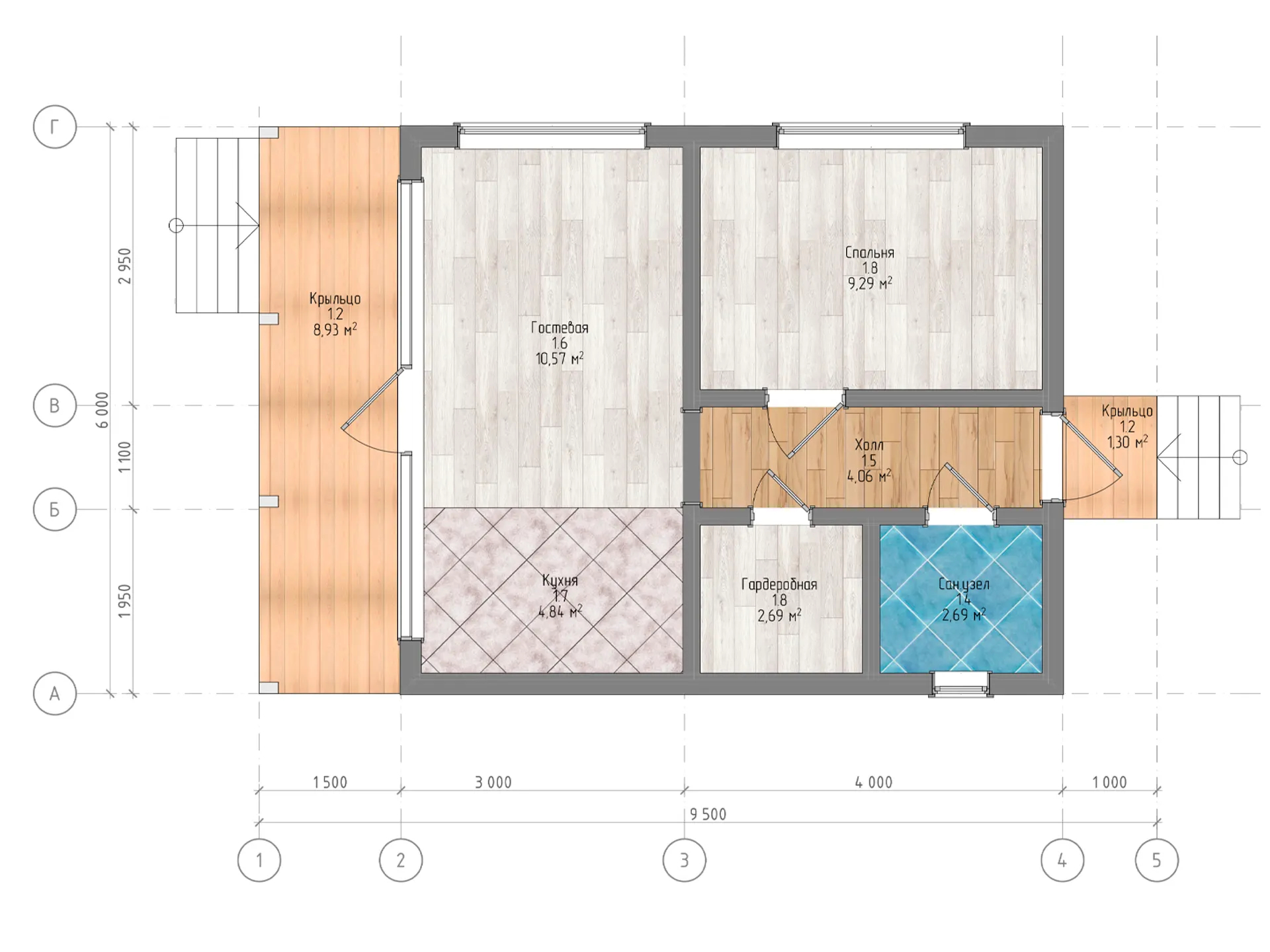 Каркасный дом 6 х 9,5 м