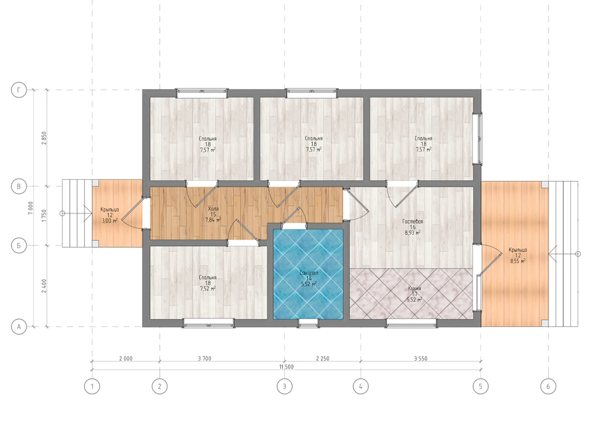 Каркасный дом 7 х 11,5 м