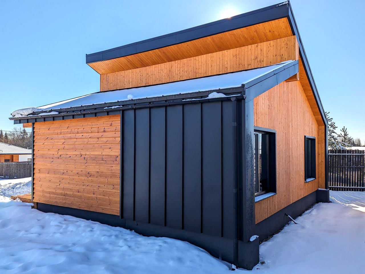 По проекту. Обрезная доска, 200 мм камерной сушки, стойки, ригеля, диагональные укосины. Стены снаружи зашиваются виниловый сайдинг DOCKE или панели фасадные гибкие Hauberk с обрешёткой и ветрозащитной мембраной. Шаг 0,59 м. Утепление 200 мм, минеральной ватой (плиты). Изнутри монтируется пароизоляция и внутренняя отделка, присутствует вент-зазор (возможна замена фасада на Фиброцементный сайдинг, Имитацию бруса, Гибкий кирпич, Проф. лист) уточняйте у менеджера.