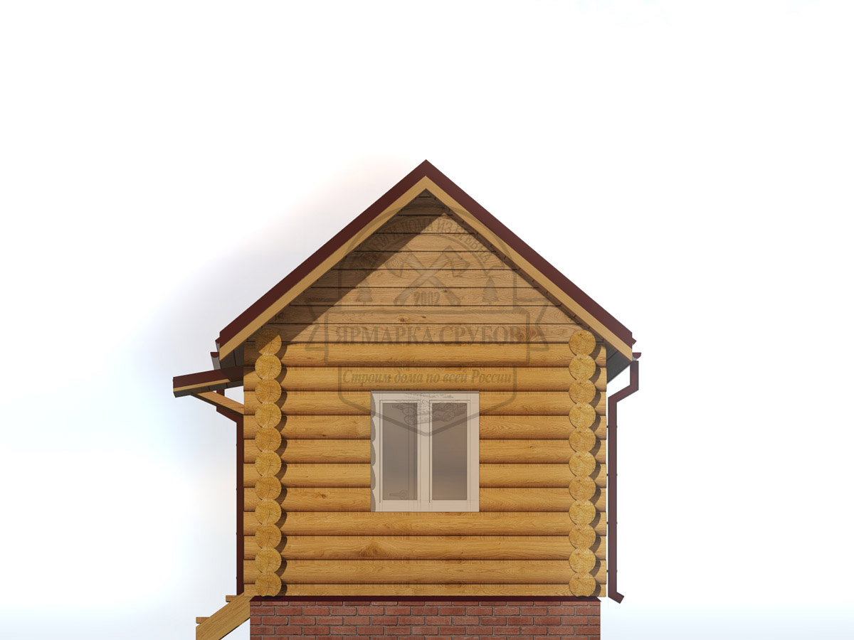 По проекту. Выпуски верхнего и нижнего венцов по длинной стороне сруба длиной до 3 метров, опорные стойки из круглого бревна.