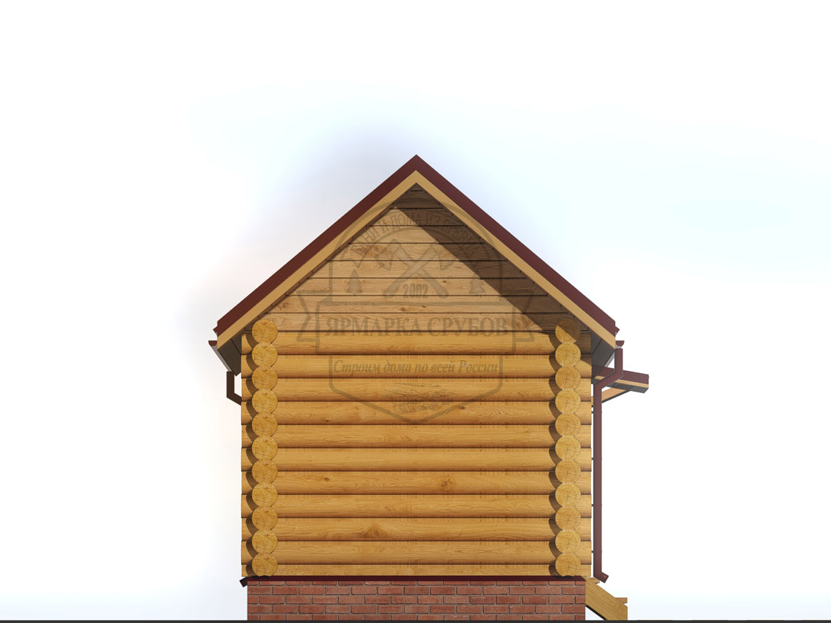 По проекту, бревно или зашиты обрезной доской 25х150 мм. Каркас фронтонов, доска 50х150 мм. Высота фронтонов, по проекту 1,5 - 2.6 м.