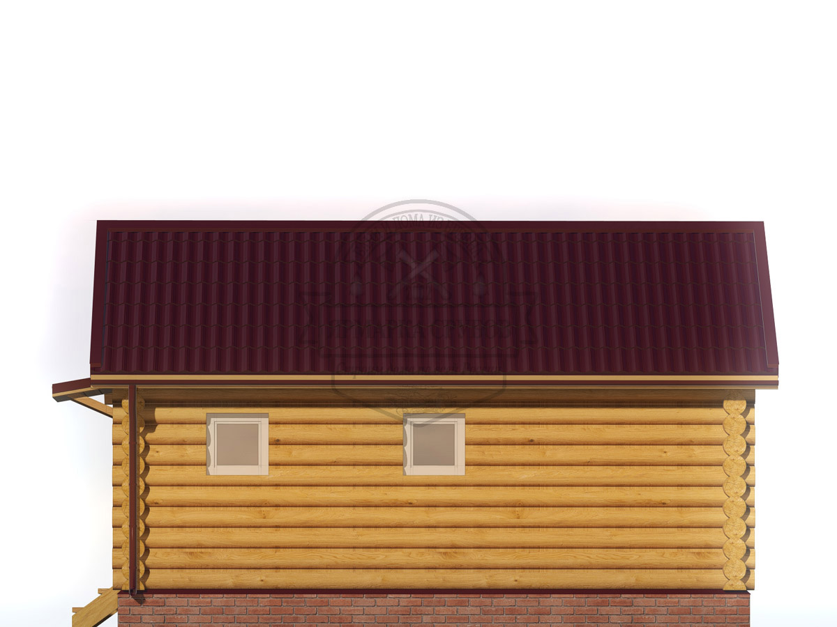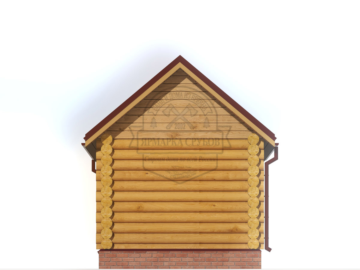 По проекту, бревно или зашиты обрезной доской 25х150 мм. Каркас фронтонов, доска 50х150 мм. Высота фронтонов, по проекту 1,5 - 2.6 м.