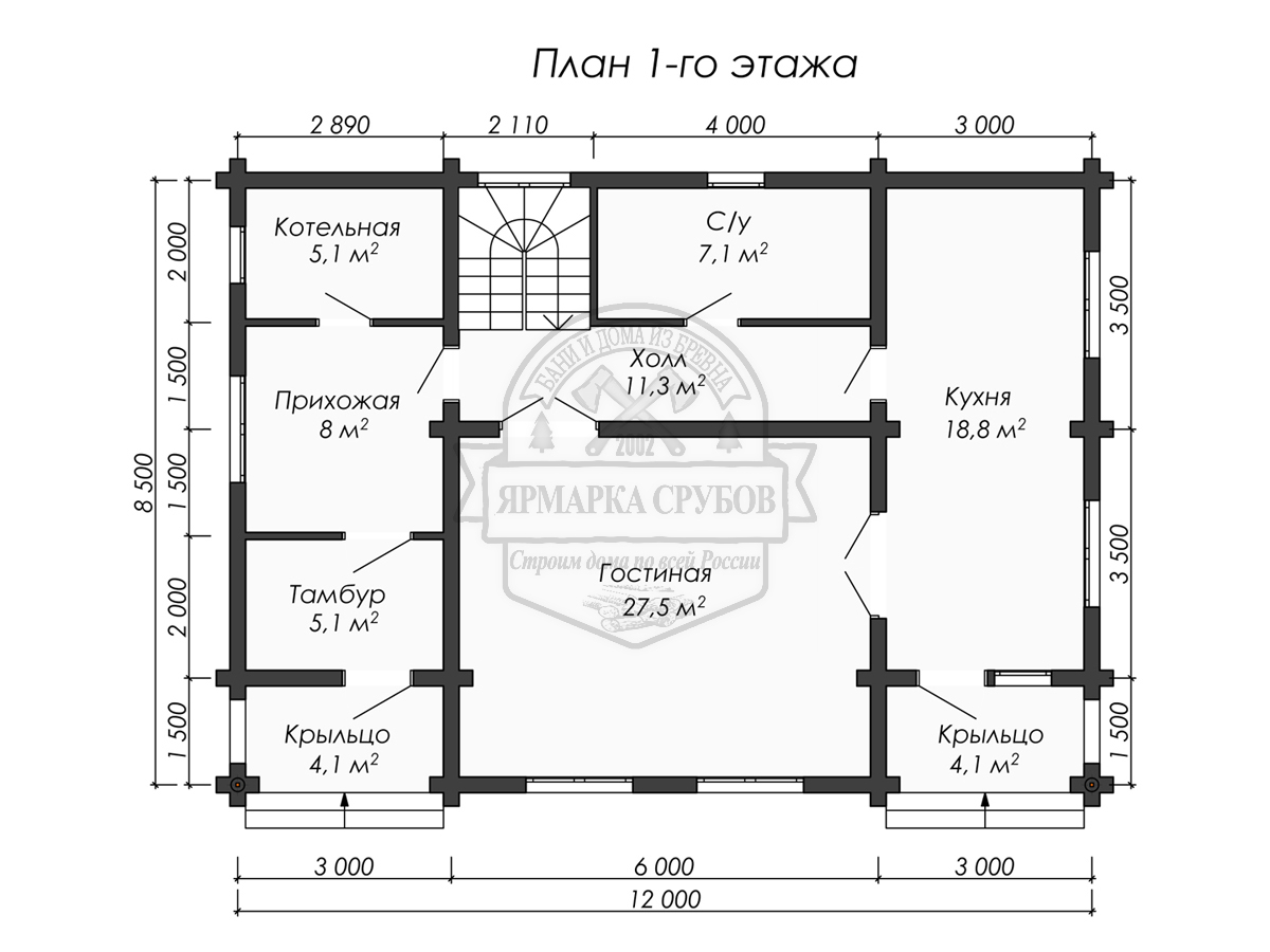 Дом из бревна 8,5 х 12 м