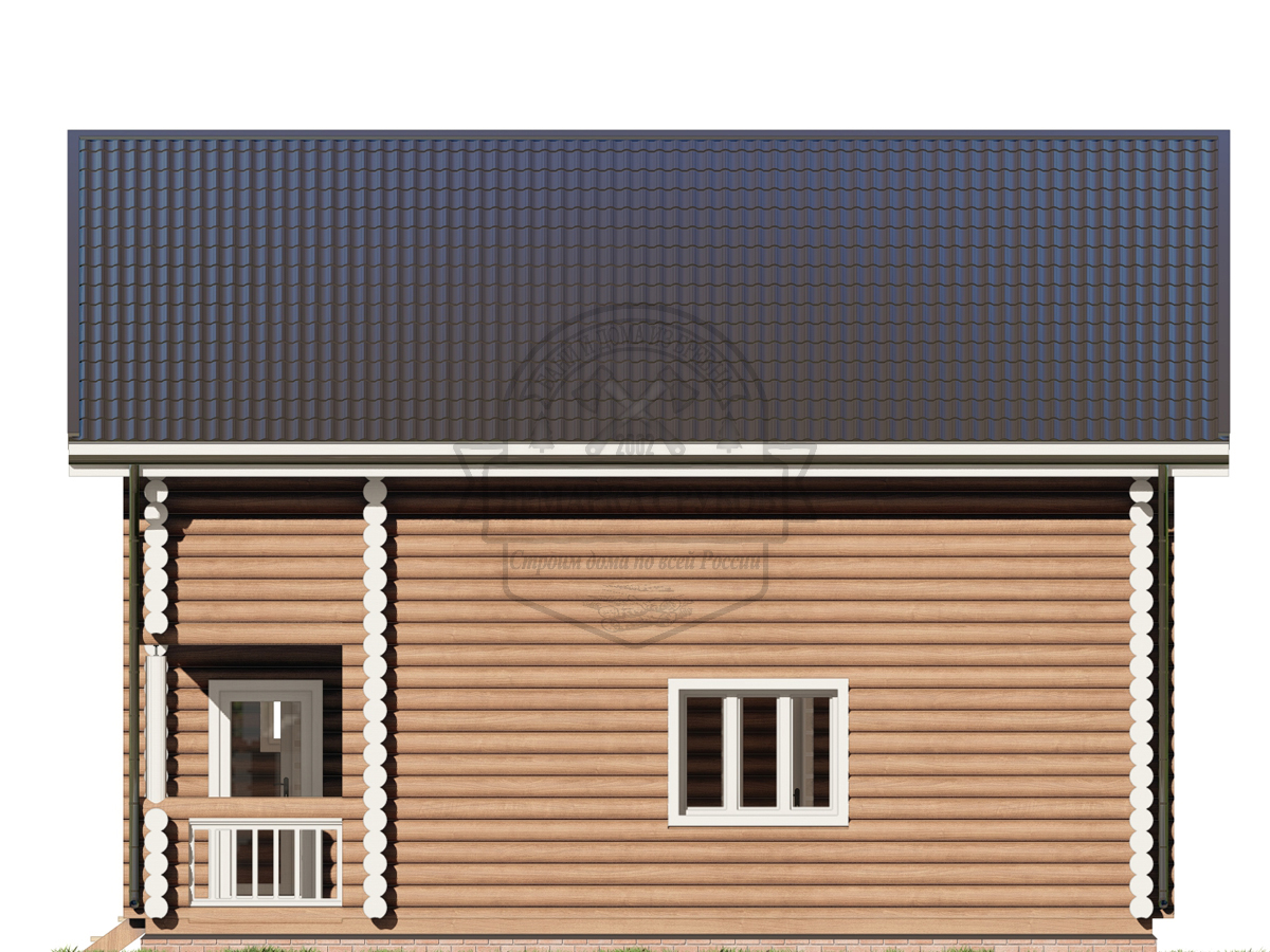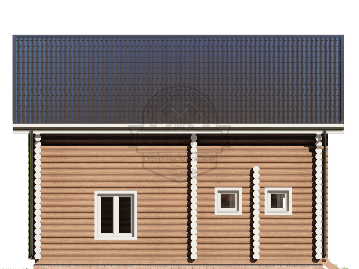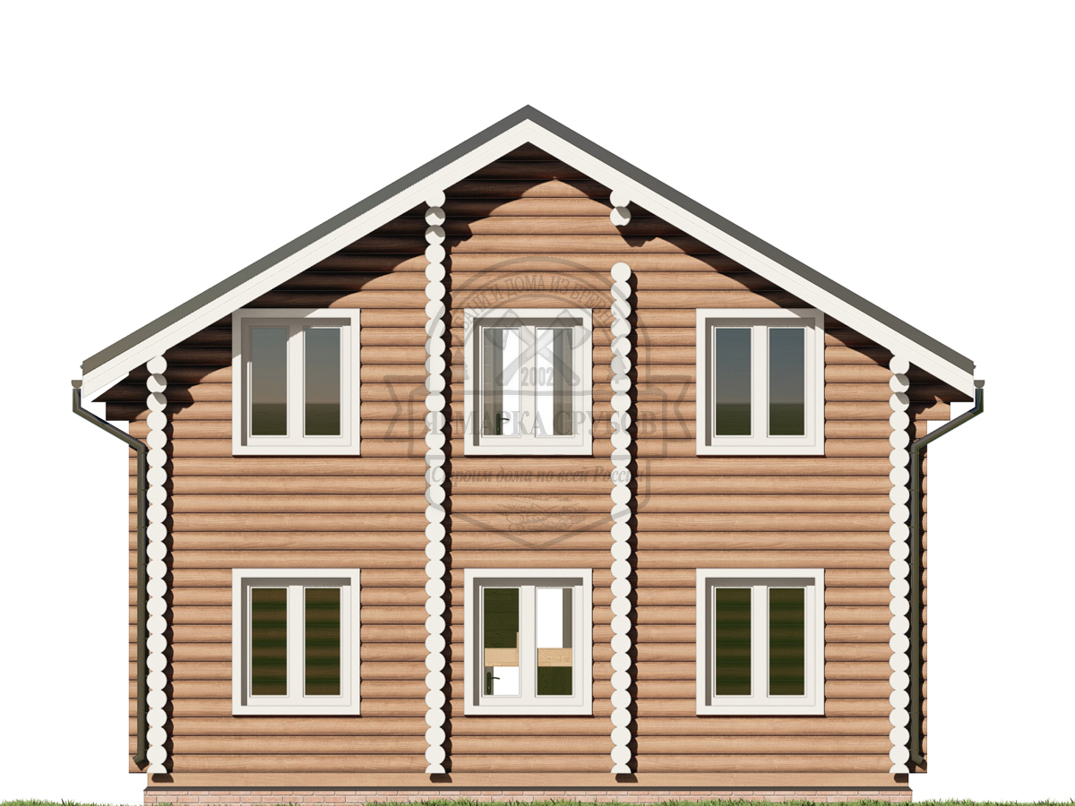 По проекту, бревно или зашиты обрезной доской 25х150 мм. Каркас фронтонов, доска 50х150 мм. Высота фронтонов, по проекту 1,5 - 2.6 м.