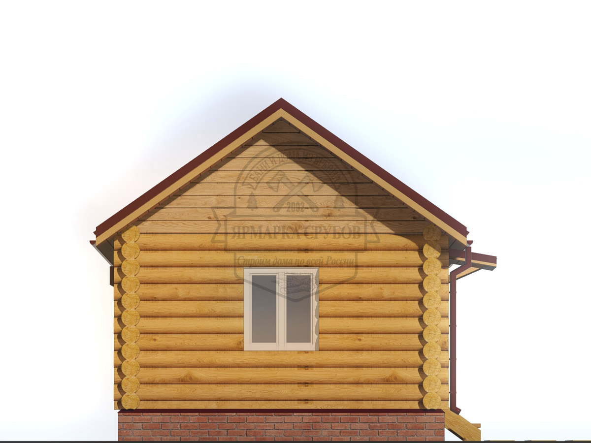 По проекту, бревно или зашиты обрезной доской 25х150 мм. Каркас фронтонов, доска 50х150 мм. Высота фронтонов, по проекту 1,5 - 2.6 м.