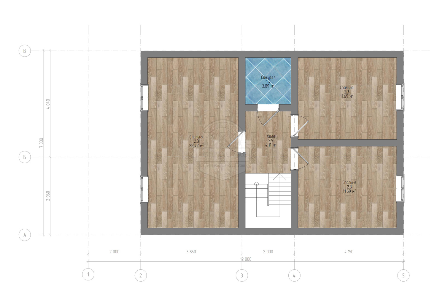 По проекту рубленные из такого же бревна, 1 и 2 этаж (несущие стены), дополнительные перегородки, уточняйте у менеджера.