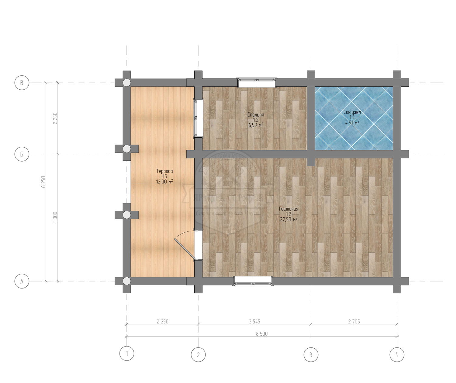 Дом из бревна 6,2х8,5 м