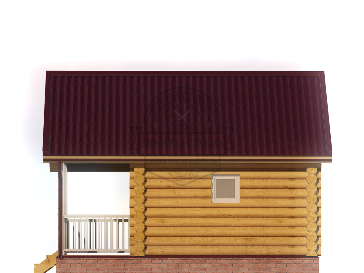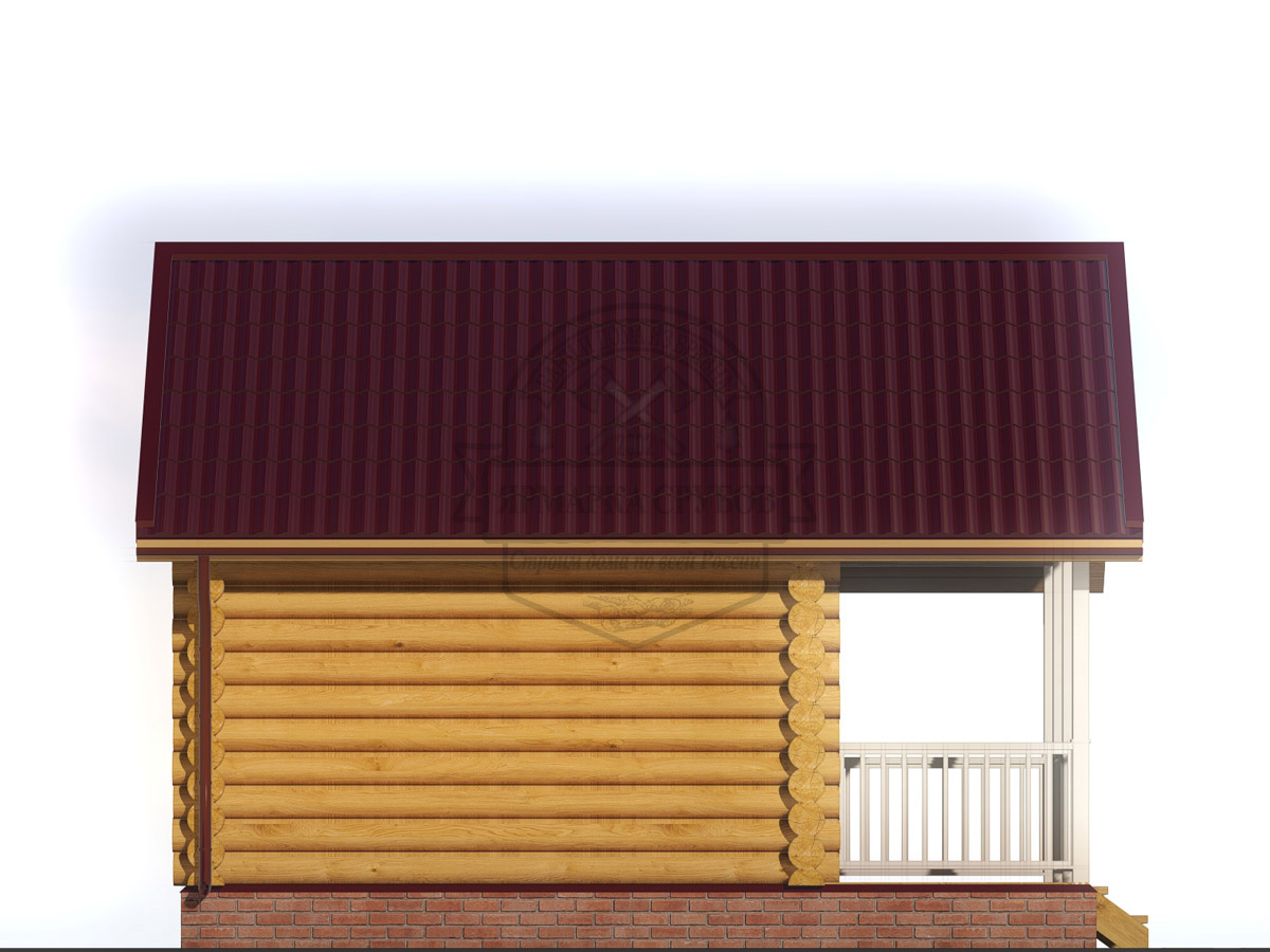 По проекту. Выпуски верхнего и нижнего венцов по длинной стороне сруба длиной до 3 метров, опорные стойки из круглого бревна.