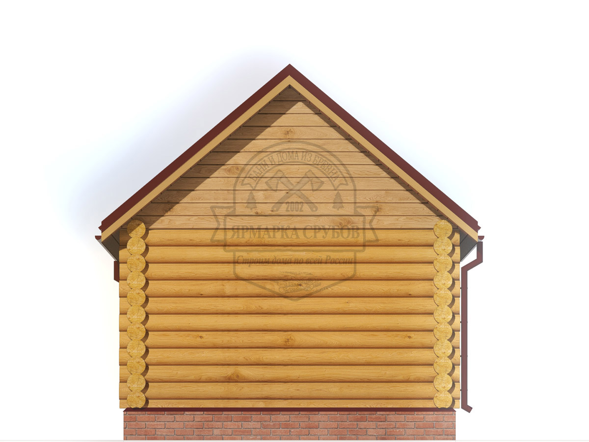 По проекту, бревно или зашиты обрезной доской 25х150 мм. Каркас фронтонов, доска 50х150 мм. Высота фронтонов, по проекту 1,5 - 2.6 м.