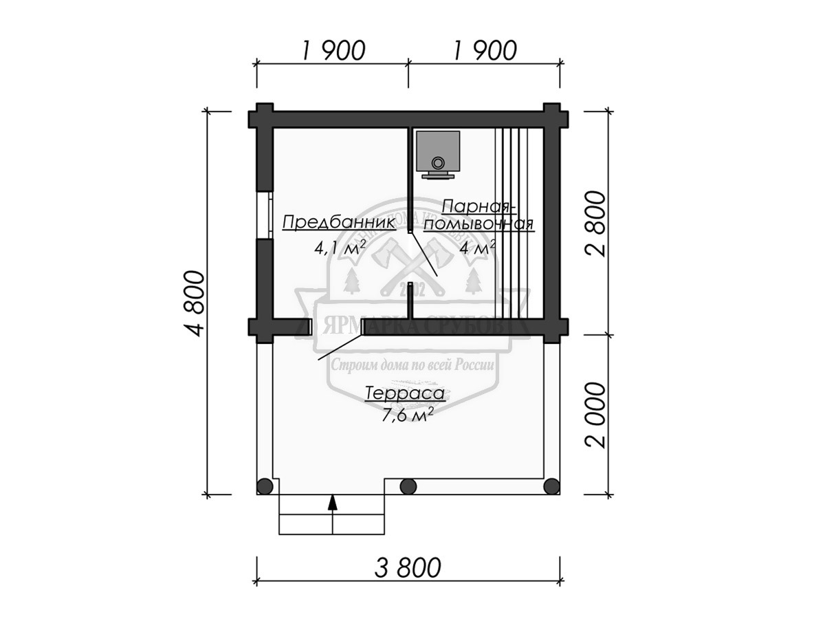 Баня из бревна 3,8х4,8 м