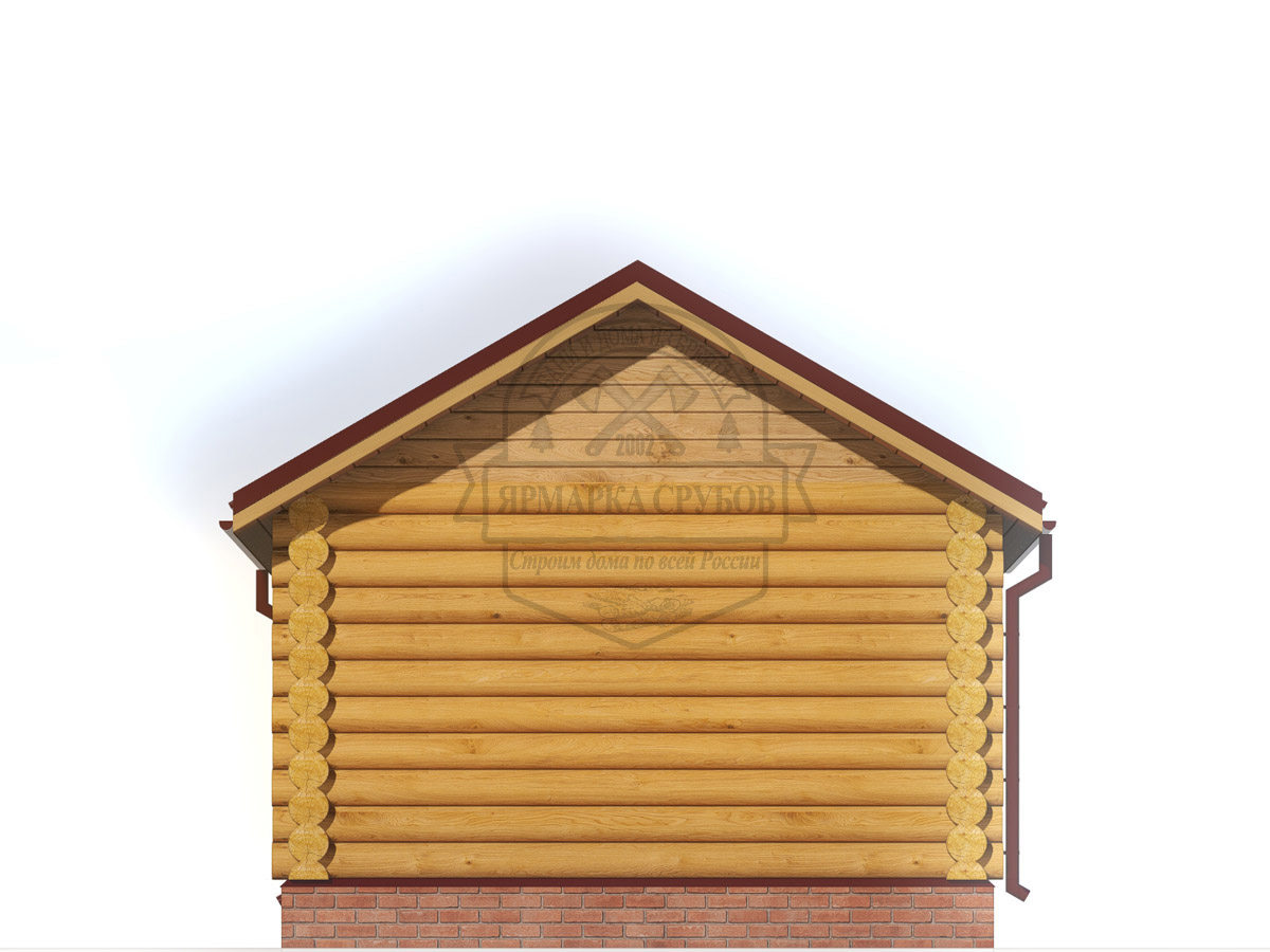 По проекту, бревно или зашиты обрезной доской 25х150 мм. Каркас фронтонов, доска 50х150 мм. Высота фронтонов, по проекту 1,5 - 2.6 м.