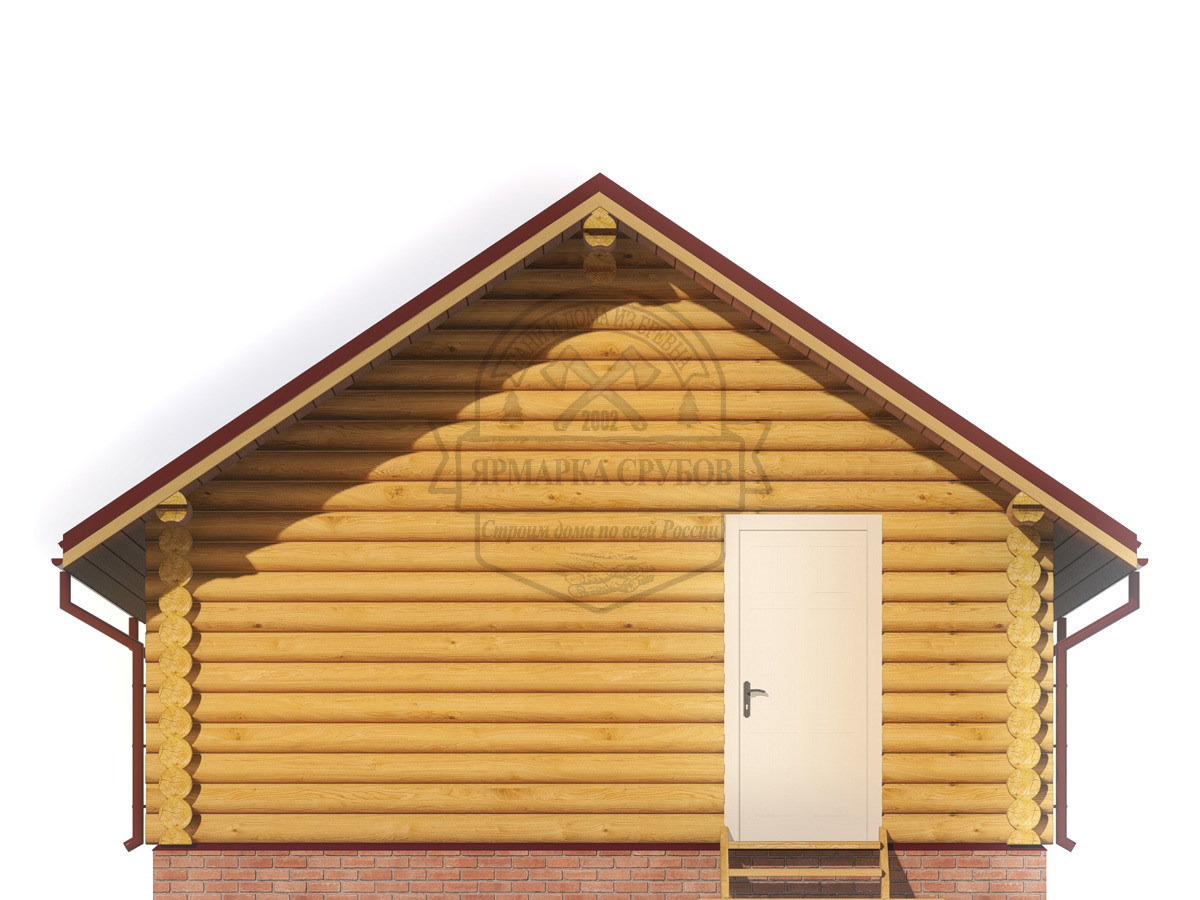 По проекту. Выпуски верхнего и нижнего венцов по длинной стороне сруба длиной до 3 метров, опорные стойки из круглого бревна.