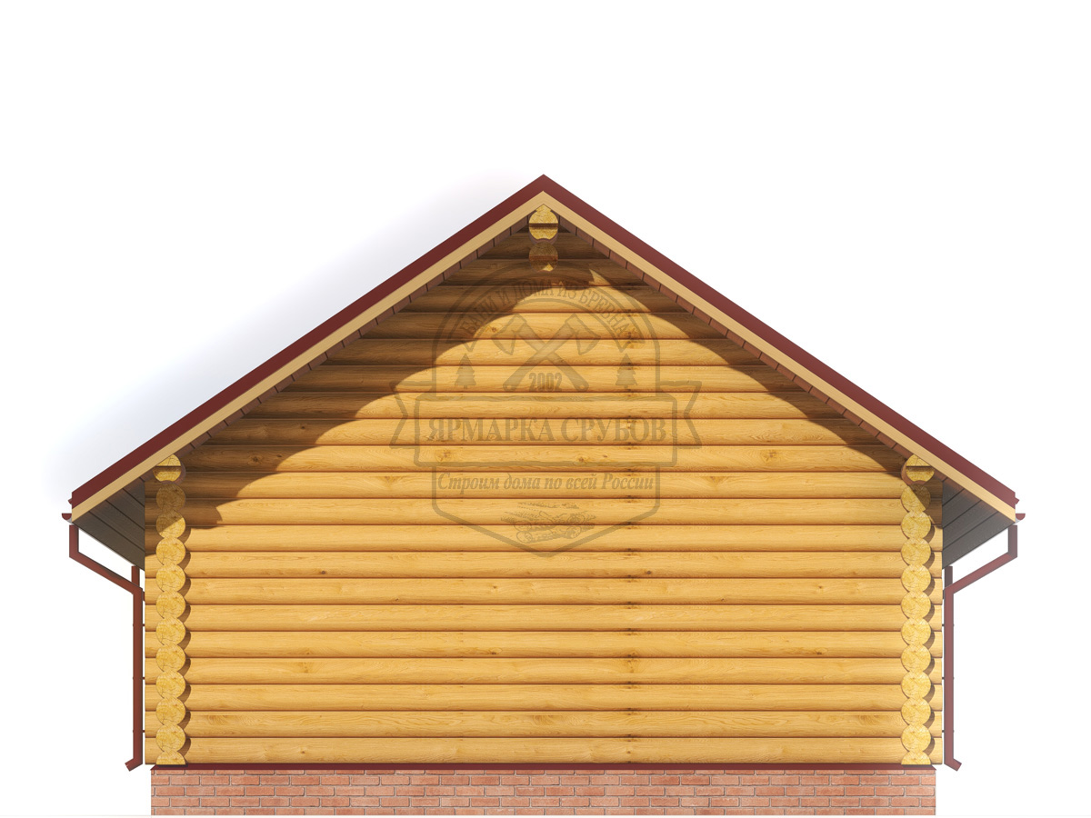 По проекту, бревно или зашиты обрезной доской 25х150 мм. Каркас фронтонов, доска 50х150 мм. Высота фронтонов, по проекту 1,5 - 2.6 м.