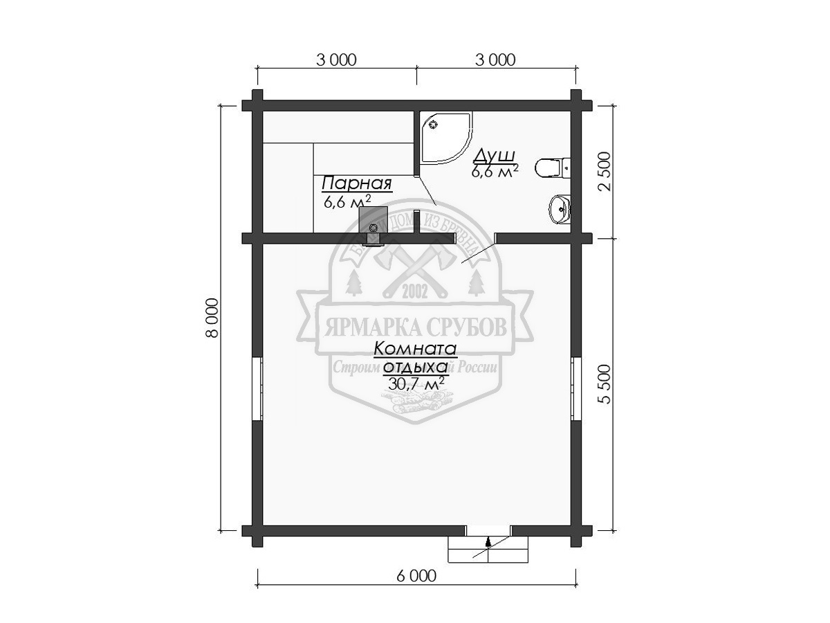 Баня из бревна 6х8 м