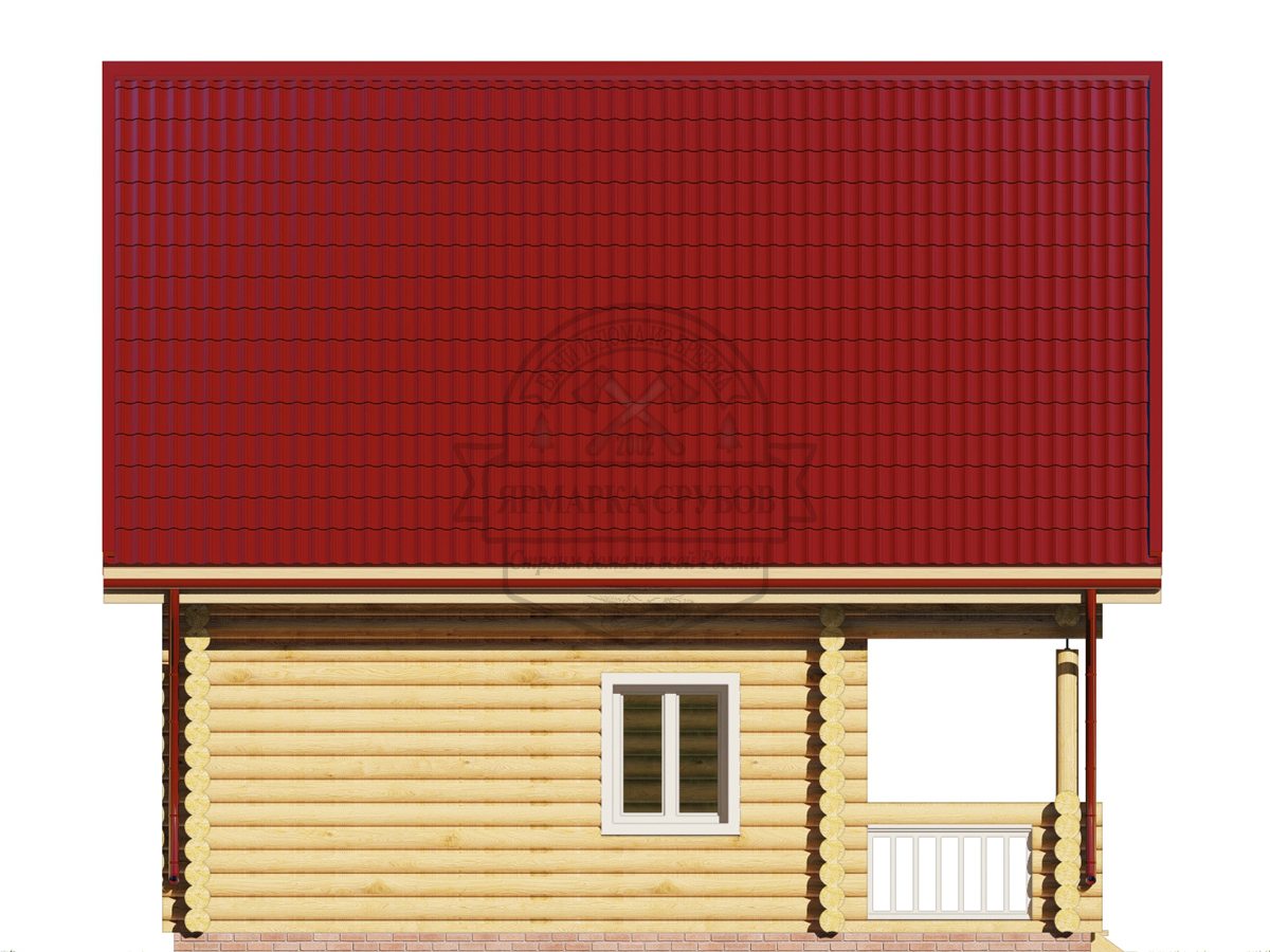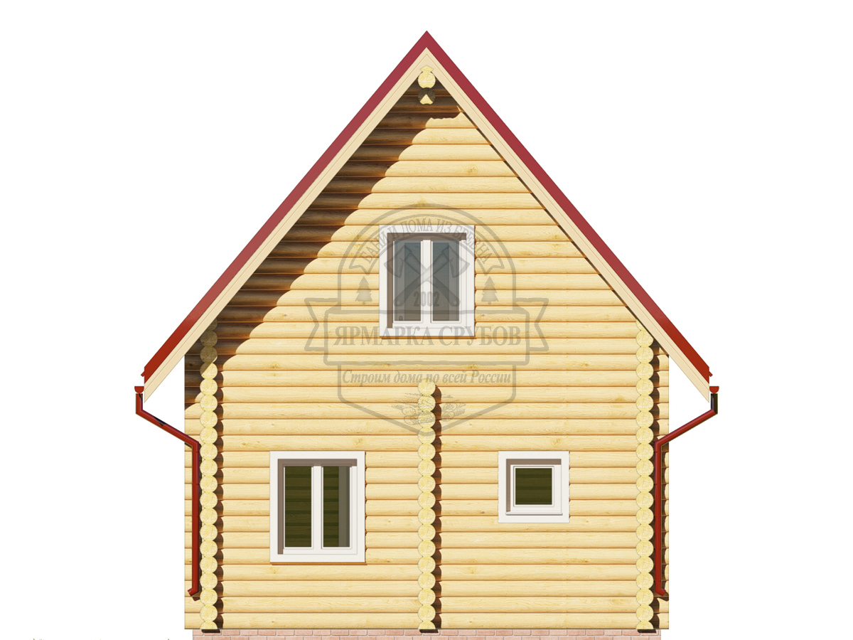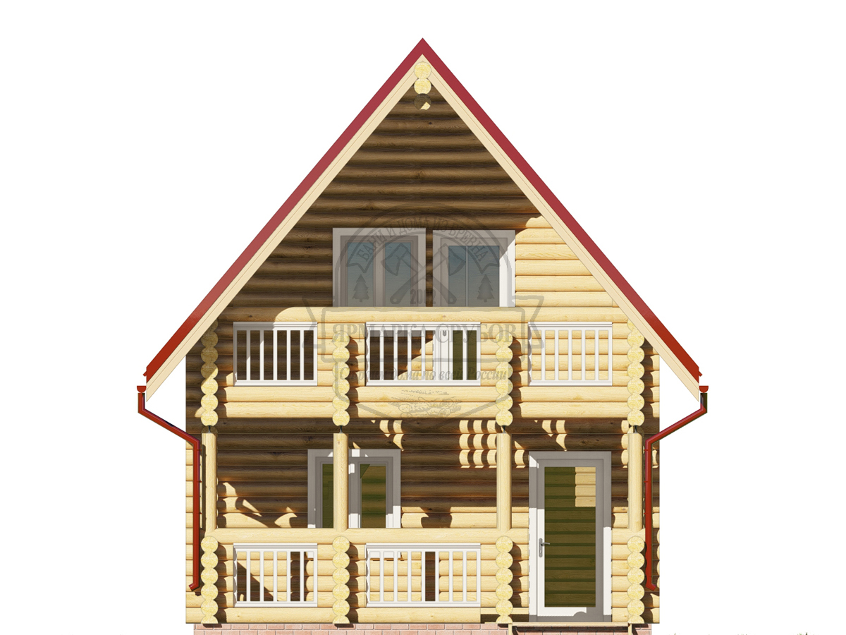 По проекту, бревно или зашиты обрезной доской 25х150 мм. Каркас фронтонов, доска 50х150 мм. Высота фронтонов, по проекту 1,5 - 2.6 м.