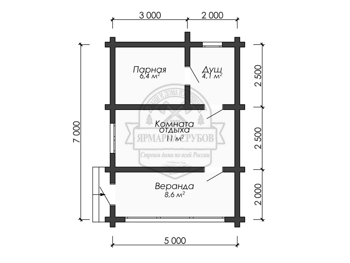 Баня из бревна 5х7 м