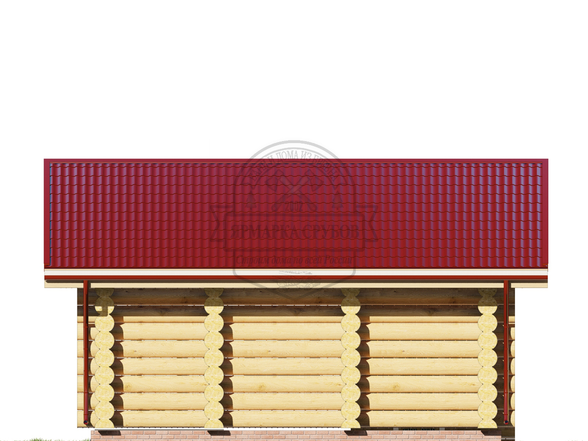 По проекту. Выпуски верхнего и нижнего венцов по длинной стороне сруба длиной до 3 метров, опорные стойки из круглого бревна.