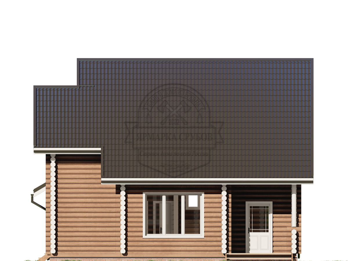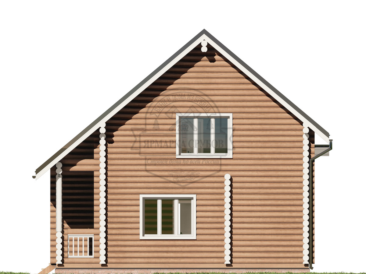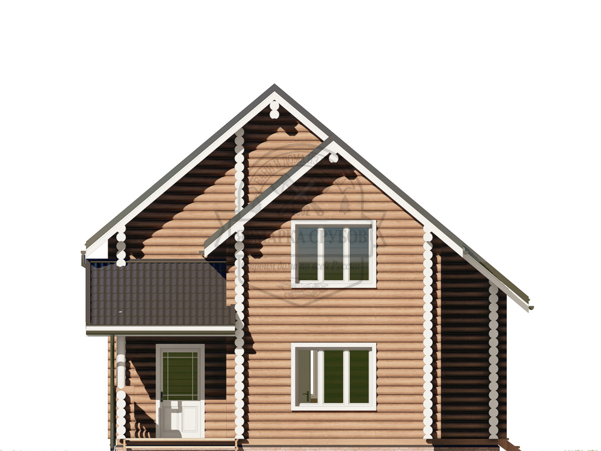 По проекту, бревно или зашиты обрезной доской 25х150 мм. Каркас фронтонов, доска 50х150 мм. Высота фронтонов, по проекту 1,5 - 2.6 м.