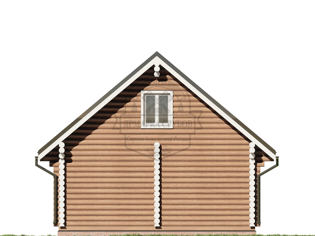 По проекту, бревно или зашиты обрезной доской 25х150 мм. Каркас фронтонов, доска 50х150 мм. Высота фронтонов, по проекту 1,5 - 2.6 м.