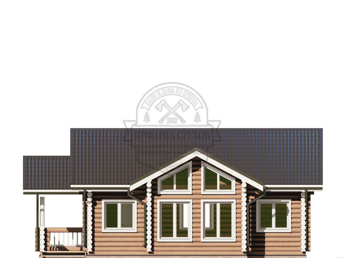 По проекту, бревно или зашиты обрезной доской 25х150 мм. Каркас фронтонов, доска 50х150 мм. Высота фронтонов, по проекту 1,5 - 2.6 м.
