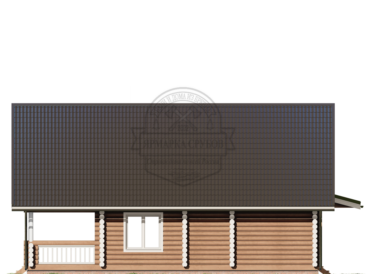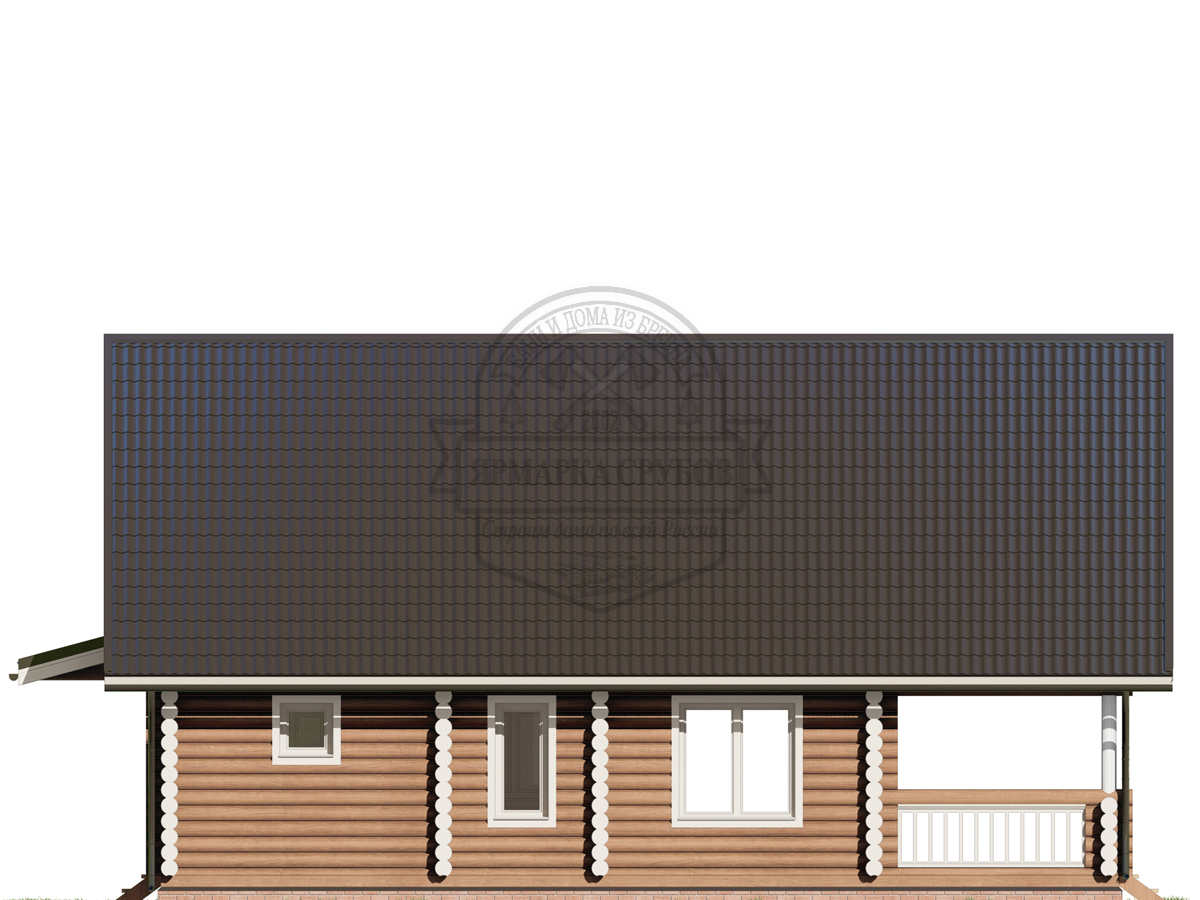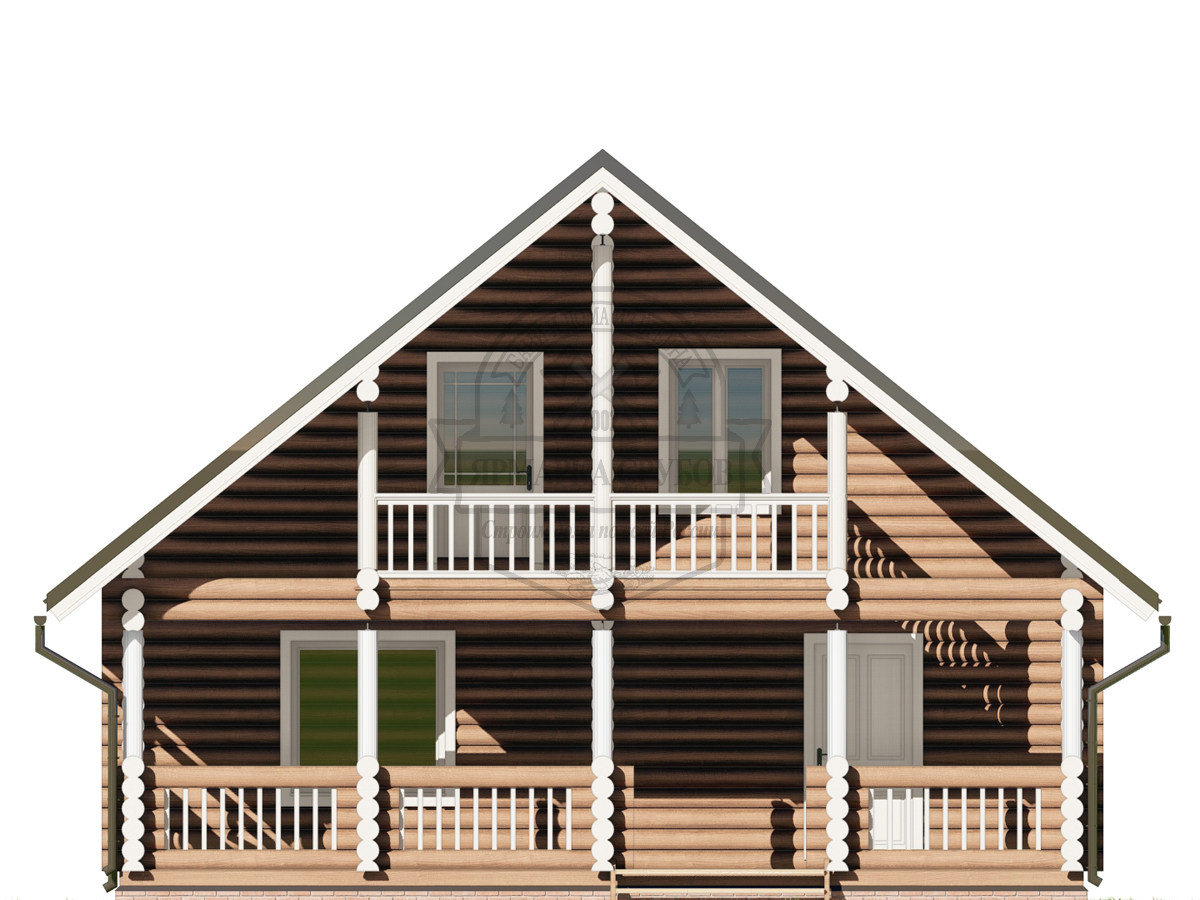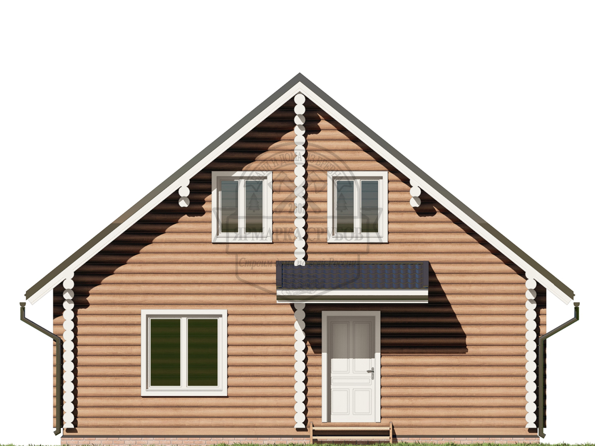 По проекту, бревно или зашиты обрезной доской 25х150 мм. Каркас фронтонов, доска 50х150 мм. Высота фронтонов, по проекту 1,5 - 2.6 м.